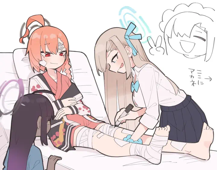 The following tags implicate this tag: bandage_on_face, bandaged_arm, bandaged_fingers, bandaged_foot, bandaged_hand, bandaged_head, bandaged_leg, bandaged_neck, bandaged_wrist, bandages_over_eyes, blood_on_bandages, holding_bandages, and naked_bandage (learn more).