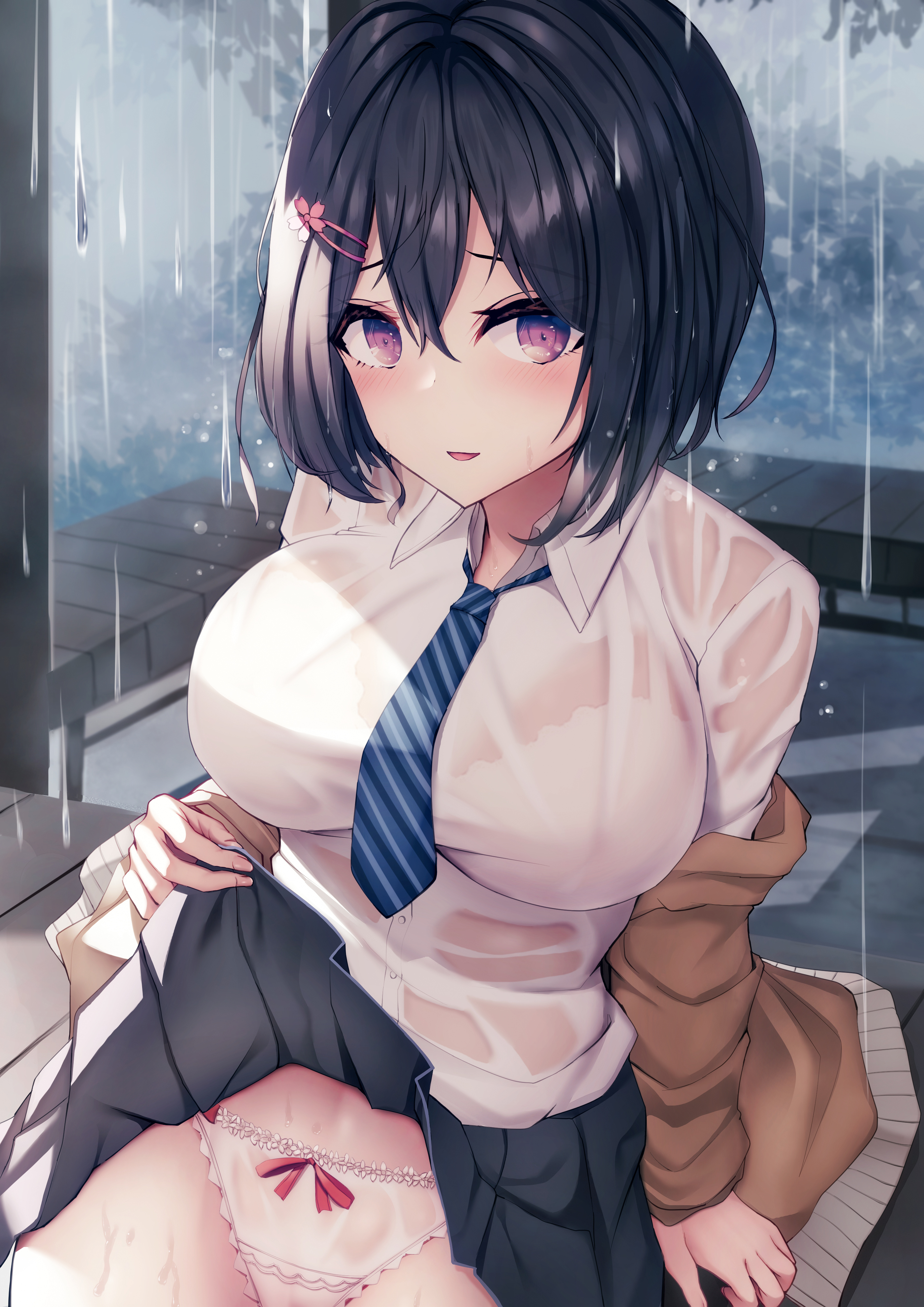今回は先ほど投稿した幼馴染ちゃんとの雨宿りの脱ぎ差分になります。