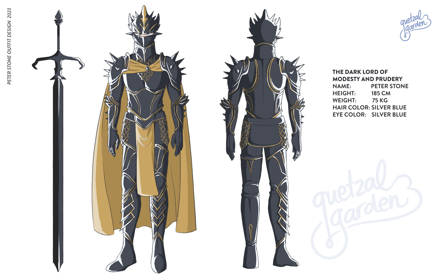 Draw this black knight here: https://skeb.jp/@_nn_Mr_/works/24 , standing in front of a burning, destroyed building. His eyes are glowing, and blood is on him. He is 185 cm tall, and he is holding a 183 cm long zweihander from here: https://pbs.twimg.com/media/GJ4k16RXMAAOprn?format=jpg&name=large . Make him look evil! Do not forget his armor and his helmet.