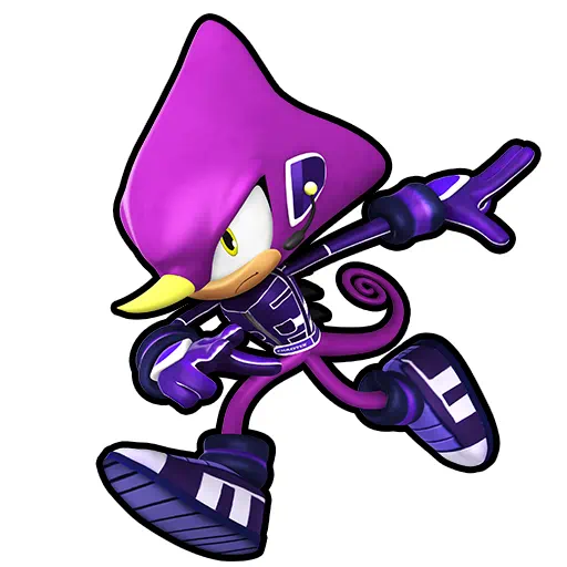 A purple, anthropomorphic chameleon who acts as a calm-but-opinionated ninja warrior in the Sonic the Hedgehog series. He’s best known as the “speed” member of the Chaotix Detective Agency, working alongside Vector the Crocodile and Charmy Bee.