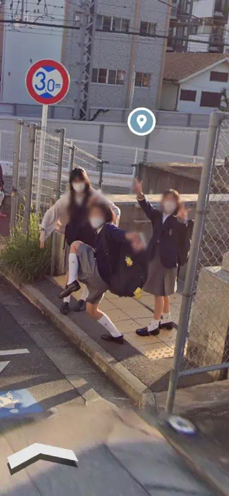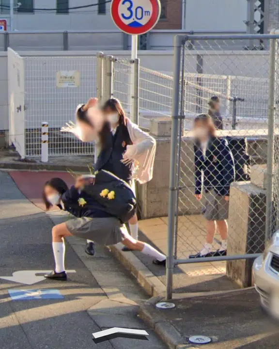 A meme based on, as the name indicates, a collection of Google Street View photos of three Japanese high school students striking a pose.