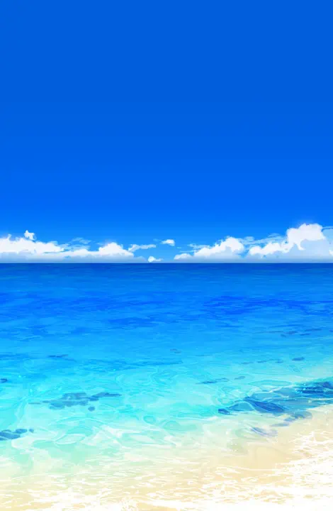 A large body of water on the Earth's surface. There's usually a beach near the coastline of a landmass. Sometimes one can see the horizon if they look far enough.