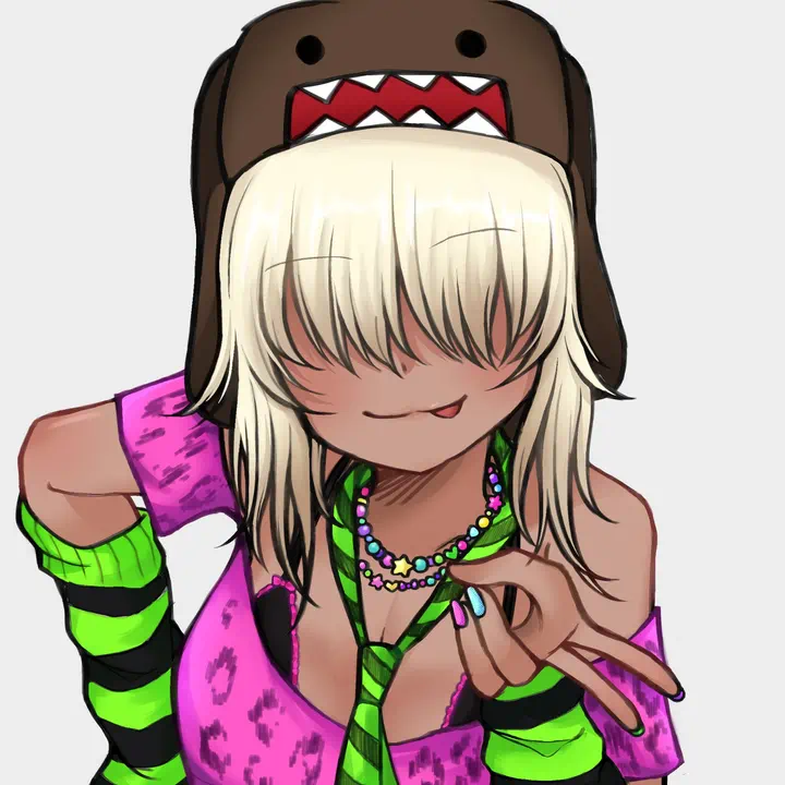 Hair is often fluffy with a fringe bang that falls over one eye (scene cut). Some sections may be dyed with a repeating striped pattern, or brightly colored streaks.