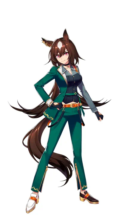 A prideful Umamusume character with a motto of "Sirius the one brightest star". Her desire is to dominate even global competition. She's brash and foul-mouthed, but how she's got real skills to back up her immense confidence endows her with a charisma of her own. Furthermore, she would never lie thanks to her dislike of dishonesty and underhanded means. Hence, she's naturally charming. She calls her Trainer Puppy.