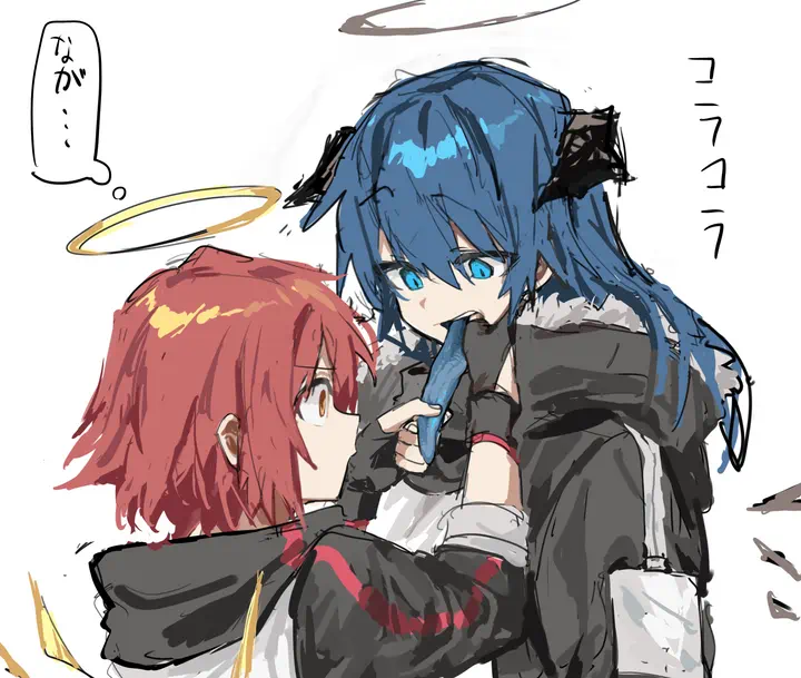 One person is using their fingers or a pinching item to grab onto another's tongue.